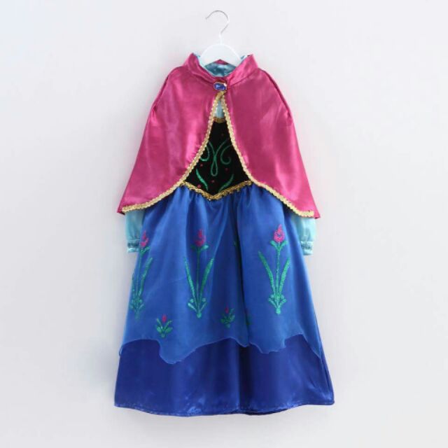 ชุดเจ้าหญิงอันนาเสมือนจริง ฟรุ้งฟริ้ง แขนยาวพร้อมผ้าคลุมไหล่ ถอดได้